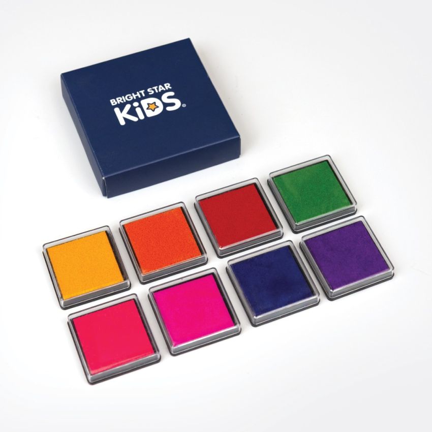 What colors are included?You’ll get 8 ink pads: purple, green, fluoro pink, pink, yellow, orange, red, and blue.